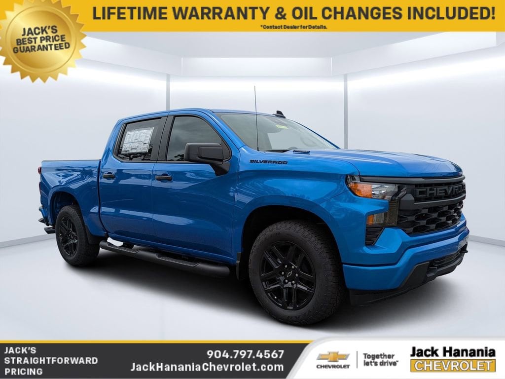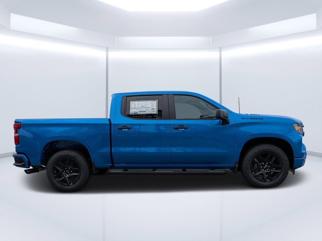 2025 Chevrolet Silverado 1500 Custom for sale St Augustine, FL, Silverado 1500 Custom, 4D Crew Cab, 2.7L I4 Turbocharged DOHC 16V LEV3-SULEV30 310hp, 8-Speed Automatic, RWD, Riptide Blue Metallic, Black Cloth, 10-Way Power Driver Seat w/Lumbar, 120-Volt Bed Mounted Power Outlet, 120-Volt Interior Power Outlet, 3.5 Monochromatic Display Driver Info Center, 4 Black Round Assist Steps (LPO), Black Chrome Exhaust Tip (LPO), Black Name Plates (LPO), Bluetooth® For Phone, Color-Keyed Carpeting Floor Covering, Custom Convenience Package, Custom Value Package, Dark Essentials Package (LPO), Deep-Tinted Glass, Dual Rear USB Ports (Charge Only), Electric Rear-Window Defogger, Electronic Cruise Control, EZ Lift Power Lock & Release Tailgate, Front Frame-Mounted Black Recovery Hooks, Front Rubberized Vinyl Floor Mats, HD Rear Vision Camera, High Capacity Suspension Package, Hitch Guidance, LED Cargo Area Lighting, Manual Tilt Wheel Steering Column, OnStar Services Capable, Power Front Windows w/Driver Express Up/Down, Power Front Windows w/Passenger Express Down, Power Rear Windows w/Express Down, Preferred Equipment Group 1CX, Rear 60/40 Folding Bench Seat (Folds Up), Rear Rubberized-Vinyl Floor Mats, Remote Keyless Entry, Remote Vehicle Starter System, SiriusXM Trial Subscription, Standard Tailgate, Teen Driver, Theft Deterrent System (Unauthorized Entry), Tire Pressure Monitoring System, Trailering Package, TurboMax Blackout Package, Wheels: 20 x 9 High Gloss Black Painted Alum, Wi-Fi Hot Spot Capable.