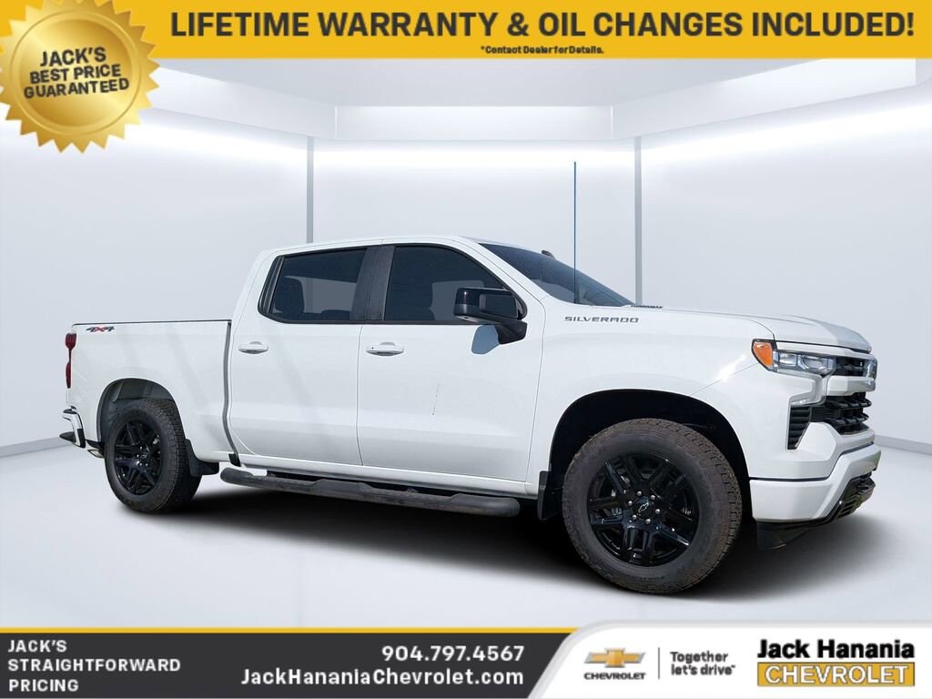 $9,400 off MSRP!17/21 City/Highway MPG2026 Chevrolet Silverado 1500 RST for sale St Augustine, FL, Silverado 1500 RST, 4D Crew Cab, 2.7L I4 Turbocharged DOHC 16V LEV3-SULEV30 310hp, 8-Speed Automatic, 4WD, Summit White, Black Cloth, 12.3 Multicolor Reconfigurable Digital Display, 120-Volt Bed Mounted Power Outlet, 120-Volt Interior Power Outlet, 6-Speaker Audio System, All-Star Edition, Auto-Locking Rear Differential, Bluetooth® For Phone, Color-Keyed Carpeting Floor Covering, Convenience Package, Deep-Tinted Glass, Dual-Zone Automatic Climate Control, Electric Rear-Window Defogger, Electronic Cruise Control, Front Frame-Mounted Black Recovery Hooks, Front LED Fog Lamps, Front Rubberized Vinyl Floor Mats, HD Rear Vision Camera, Heated Power-Adjustable Outside Mirrors, Heated Steering Wheel, High Capacity Suspension Package, High Gloss Black Mirror Caps, Hitch Guidance, Integrated Trailer Brake Controller, LED Cargo Area Lighting, Manual Tilt/Telescoping Steering Column, OnStar Services Capable, Preferred Equipment Group 1SP, Rear Rubberized-Vinyl Floor Mats, Remote Vehicle Starter System, RST Select Package, Standard Suspension Package, Standard Tailgate, Steering Wheel Audio Controls, Teen Driver, Tire Pressure Monitoring System, Trailering Package, Wi-Fi Hot Spot Capable, Wrapped Steering Wheel.Email, call, or stop in today! Jack Hanania Chevrolet, the difference is we offer a transparent buying experience. Prices are PLUS tax, tag, title fee, $994 Pre-Delivery Service Fee and $434 Electronic Tag Registration Service Fee and dealer installed options (see dealer for details). Customer must trade-in a vehicle to receive $1,500 Trade Assist credit. Financing must be provided by a third-party lender using this dealership's assistance for Customer to receive $1,500 Financing Assist credit. The final online sale price and Jack's Discount includes trade in and financing assist credits. Pre-owned vehicle pricing excludes any mechanical and cosmetic reconditioning expenses or vehicle transport and acquisition costs to the Dealership from factory sales, which amount will vary depending on the vehicle. Some New and Used trucks are upfit with aftermarket lift kits, custom wheel and tire packages, that are not included in the online sales price. Vehicles with lift kits, custom wheel and tire packages, tint and ceramic coating will be added to the sales price. All prices, specifications, and availability subject to change without notice. Contact dealer for most current information. All advertised pricing is on in-stock units only and includes all applicable dealer discounts, manufacturer discounts, and incentives. Certain offers and incentives presume financing through the Manufacturer Captive Lender, subject to approved credit. Should you purchase the vehicle through the use of other funds or through other lending sources, certain offers and rebate incentives may be excluded. Due to supply chain challenges and limited inventory, vehicles may be subject to an additional market adjustment depending on inventory production, availability and market conditions. Please see dealer for details.
