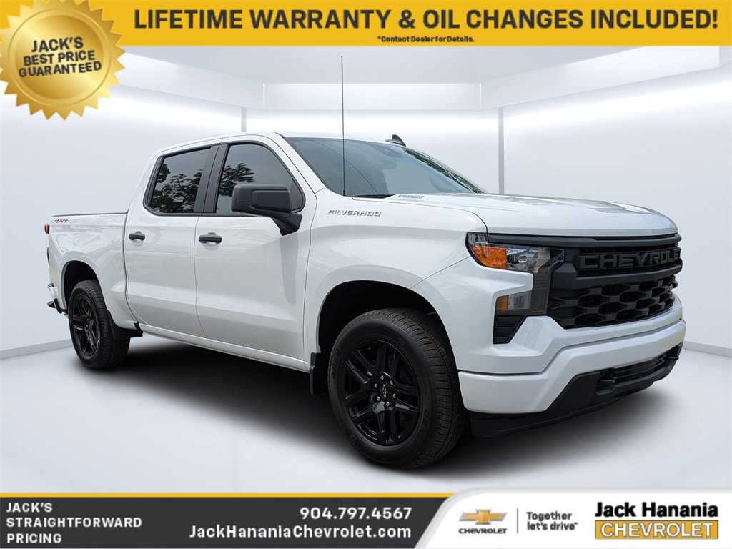 2026 Chevrolet Silverado 1500 Custom for sale St Augustine, FL, HOME OF THE LIFETIME POWER TRAIN WARRANTY! ASK DEALER FOR DETAILS, 8-Speed Automatic, 4WD, Black Cloth, 10-Way Power Driver Seat with Lumbar, 120-Volt Bed Mounted Power Outlet, 120-Volt Interior Power Outlet, 3.42 Rear Axle Ratio, 3.5 Monochromatic Display Driver Info Center, 4-Wheel Disc Brakes, 40/20/40 Front Split-Bench Seat, 6 Speakers, 6-Speaker Audio System, ABS brakes, Air Conditioning, Alloy wheels, AM/FM radio: SiriusXM, Apple CarPlay/Android Auto, Auto High-beam Headlights, Auto-Locking Rear Differential, Automatic Emergency Braking, Bluetooth® For Phone, Brake assist, Bumpers: body-color, Chevytec Spray-on Black Bedliner, Cloth Seat Trim, Color-Keyed Carpeting Floor Covering, Compass, Custom Convenience Package, Custom Value Package, Deep-Tinted Glass, Delay-off headlights, Driver door bin, Driver vanity mirror, Dual front impact airbags, Dual front side impact airbags, Dual Rear USB Ports (charge Only), Electric Rear-Window Defogger, Electronic Cruise Control, Electronic Stability Control, Emergency communication system: OnStar, EZ Lift Power Lock and Release Tailgate, Following Distance Indicator, Forward Collision Alert, Front anti-roll bar, Front Center Armrest w/Storage, Front Frame-Mounted Black Recovery Hooks, Front Pedestrian Braking, Front reading lights, Front Rubberized Vinyl Floor Mats, Front wheel independent suspension, Fully automatic headlights, HD Rear Vision Camera, Heated door mirrors, High Capacity Suspension Package, Hitch Guidance, Illuminated entry, IntelliBeam Automatic High Beam on/Off, Lane Keep Assist with Lane Departure Warning, LED Cargo Area Lighting, Low tire pressure warning, Manual Tilt Wheel Steering Column, Multi-Flex Tailgate, Occupant sensing airbag, OnStar Services Capable, Outside temperature display, Overhead airbag, Overhead console, Panic alarm, Passenger door bin, Passenger vanity mirror, Power door mirrors, Power driver seat, Power Front Windows with Driver Express Up/Down, Power Front Windows with Passenger Express Down, Power Rear Windows with Express Down, Power steering, Power windows, Preferred Equipment Group 1CX, Premium audio system: Chevrolet Infotainment 3, Radio data system, Radio: Chevrolet Infotainment 3 System, Rear 60/40 Folding Bench Seat (folds Up), Rear reading lights, Rear Rubberized-Vinyl Floor Mats, Rear step bumper, Rear Wheelhouse Liners, Rear window defroster, Remote Keyless Entry, Remote keyless entry, Remote Vehicle Starter System, Security system, SiriusXM Trial Subscription, Speed control, Speed-sensing steering, Split folding rear seat, Standard Tailgate, Tachometer, Teen Driver, Theft Deterrent System (unauthorized Entry), Tilt steering wheel, Tire Pressure Monitoring System, Traction control, Trailering Package, Trip computer, Variably intermittent wipers, Voltmeter, Wheels: 20 x 9 Bright Silver Painted Aluminum, Wheels: 20 x 9 High Gloss Black Painted Aluminum, Wi-Fi Hot Spot Capable, 8-Speed Automatic, 4WD, Black Cloth.