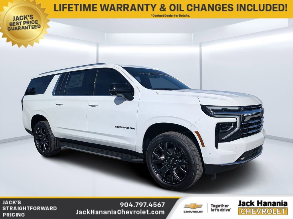 2026 Chevrolet Suburban LT for sale St Augustine, FL, HOME OF THE LIFETIME POWER TRAIN WARRANTY! ASK DEALER FOR DETAILS, 2-Way Driver Power Lumbar Seat Adjuster, 2-Way Front Passenger Power Lumbar Seat Adjuster, 2nd Row Power Release 60/40 Split-Folding Bench Seat, 3.23 Rear Axle Ratio, 3rd Row 60/40 Power-Folding Split-Bench, 3rd row seats: split-bench, 4-Wheel Disc Brakes, 6 Speakers, 6-Speaker Audio System, 8-Way Power Driver Seat Adjuster, 8-Way Power Front Passenger Seat Adjuster, ABS brakes, Air Conditioning, Alloy wheels, AM/FM radio: SiriusXM with 360L, Apple CarPlay/Android Auto, Auto High-beam Headlights, Auto-Dimming Inside Rear-View Mirror, Automatic temperature control, Black Mirror Caps, Black Name Plates, Bose 10-Speaker Surround with CenterPoint, Brake assist, Bumpers: body-color, Comfort Package, Compass, Dark Essentials Package, Delay-off headlights, Driver door bin, Driver vanity mirror, Dual front impact airbags, Dual front side impact airbags, Electronic Stability Control, Emergency communication system: OnStar Services capable, Exterior Parking Camera Rear, Four wheel independent suspension, Front and Rear Black Bowtie Emblems, Front anti-roll bar, Front Bucket Seats, Front Center Armrest, Front dual zone A/C, Front LED Fog Lamps, Front reading lights, Fully automatic headlights, Heated 2nd Row Outboard Seats, Heated door mirrors, Heated Driver and Front Passenger Seats, Heated front seats, Heated Power-Adjustable Outside Mirrors, Heated Steering Wheel, Illuminated entry, Interior Camera, Leather-Appointed Seating, LED Headlamps with LED Daytime Running Lamps, LED Tail Lamps, Low tire pressure warning, Luxury Package, Memory seat, Memory Settings, Memory Settings For Driver, Navigation system: Google built-in compatibility (select service plan required, terms and limitations apply), Occupant sensing airbag, Outside temperature display, Overhead airbag, Overhead console, Panic alarm, Passenger door bin, Passenger vanity mirror, Power door mirrors, Power driver seat, Power Liftgate, Power passenger seat, Power Release 2nd Row Bucket Seats, Power steering, Power windows, Preferred Equipment Group 1LT, Premium Smooth Ride Suspension, Radio data system, Radio: 17.7 Diagonal Advanced Color LCD Display, Rain sensing wipers, Rear air conditioning, Rear anti-roll bar, Rear Power Liftgate, Rear reading lights, Rear seat center armrest, Rear window defroster, Rear window wiper, Remote keyless entry, Security system, SiriusXM with 360L Trial Subscription, Speed control, Speed-sensing steering, Split folding rear seat, Spoiler, Steering wheel mounted audio controls, Tachometer, Telescoping steering wheel, Tilt steering wheel, Traction control, Trip computer, Universal Home Remote, Variably intermittent wipers, Voltmeter, Wheel Locks (set of 4), Wheels: 18 x 8.5 Bright Silver Painted Aluminum, Wheels: 22 x 9 6-Spoke Carbon Flash Metallic Aluminum, Wireless Apple CarPlay/Wireless Android Auto, Wireless Phone Charging.