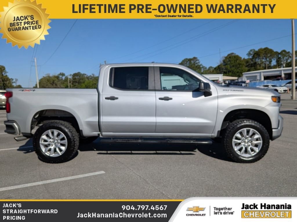 THIS VEHICLE IS ONLY AVAILABLE AT JACK HANANIA CHEVROLET AT 2255 US-1 SAINT AUGUSTINE FL 32086 CALL NOW TO BOOK YOUR TEST DRIVE #904-797-4567.2020 Chevrolet Silverado 1500 Custom for sale St Augustine, FL, HOME OF THE LIFETIME POWER TRAIN WARRANTY! ASK DEALER FOR DETAILS, 6-Speed Automatic Electronic with Overdrive, 4WD, Jet Black Cloth, 170 Amps Alternator, 3.42 Rear Axle Ratio, 3.5 Diagonal Monochromatic Display, 4-Wheel Disc Brakes, 4G LTE Wi-Fi Hot Spot Capable, 6 Speakers, ABS brakes, Air Conditioning, All-Weather Floor Liner (LPO), Alloy wheels, Apple CarPlay/Android Auto, Bluetooth® For Phone, Body Color Grille, Brake assist, Bumpers: body-color, Chevrolet Connected Access Capable, Cloth Seat Trim, Color-Keyed Carpeting Floor Covering, Compass, Custom Convenience Package, Custom Value Package, Deep-Tinted Glass, Delay-off headlights, Driver door bin, Driver vanity mirror, Dual front impact airbags, Dual front side impact airbags, Electric Rear-Window Defogger, Electronic Stability Control, Exterior Parking Camera Rear, EZ Lift Power Lock & Release Tailgate, Front 40/20/40 Split-Bench Seat, Front anti-roll bar, Front Center Armrest, Front Frame-Mounted Black Recovery Hooks, Front reading lights, Front Rubberized Vinyl Floor Mats, Front wheel independent suspension, Fully automatic headlights, Heated door mirrors, Heavy Duty Suspension, Hitch Guidance, Illuminated entry, Infotainment Package, LED Cargo Area Lighting, Locking Tailgate, Low tire pressure warning, Manual Tilt-Wheel Steering Column, Occupant sensing airbag, OnStar & Chevrolet Connected Services Capable, Outside temperature display, Overhead airbag, Overhead console, Panic alarm, Passenger door bin, Passenger vanity mirror, Polished Exhaust Tip, Power Door Locks, Power door mirrors, Power Front Windows w/Driver Express Up/Down, Power Front Windows w/Passenger Express Down, Power Rear Windows w/Express Down, Power steering, Power windows, Preferred Equipment Group 1CX, Radio data system, Radio: Chevrolet Infotainment 3 System, Rear 60/40 Folding Bench Seat (Folds Up), Rear reading lights, Rear Rubberized-Vinyl Floor Mats, Rear step bumper, Remote Keyless Entry, Remote keyless entry, Remote Vehicle Starter System, SiriusXM Radio, Speed control, Speed-sensing steering, Split folding rear seat, Steering Wheel Mounted Electronic Cruise Control, Tachometer, Theft Deterrent System (Unauthorized Entry), Tilt steering wheel, Traction control, Trailering Package, Trip computer, Variably intermittent wipers, Voltmeter, Wheels: 20 x 9 Bright Silver Painted Aluminum, 6-Speed Automatic Electronic with Overdrive, 4WD, Jet Black Cloth.Email, call, or stop in today! Jack Hanania Chevrolet, the difference is we offer a transparent buying experience. Prices are PLUS tax, tag, title fee, $994 Pre-Delivery Service Fee and $434 Electronic Tag Registration Service Fee and dealer installed options (see dealer for details). Customer must trade-in a vehicle to receive $1,500 Trade Assist credit. Financing must be provided by a third-party lender using this dealership's assistance for Customer to receive $1,500 Financing Assist credit. The final online sale price and Jack's Discount includes trade in and financing assist credits. Pre-owned vehicle pricing excludes any mechanical and cosmetic reconditioning expenses or vehicle transport and acquisition costs to the Dealership from factory sales, which amount will vary depending on the vehicle. Some New and Used trucks are upfit with aftermarket lift kits, custom wheel and tire packages, that are not included in the online sales price. Vehicles with lift kits, custom wheel and tire packages, tint and ceramic coating will be added to the sales price. All prices, specifications, and availability subject to change without notice. Contact dealer for most current information. All advertised pricing is on in-stock units only and includes all applicable dealer discounts, manufacturer discounts, and incentives. Certain