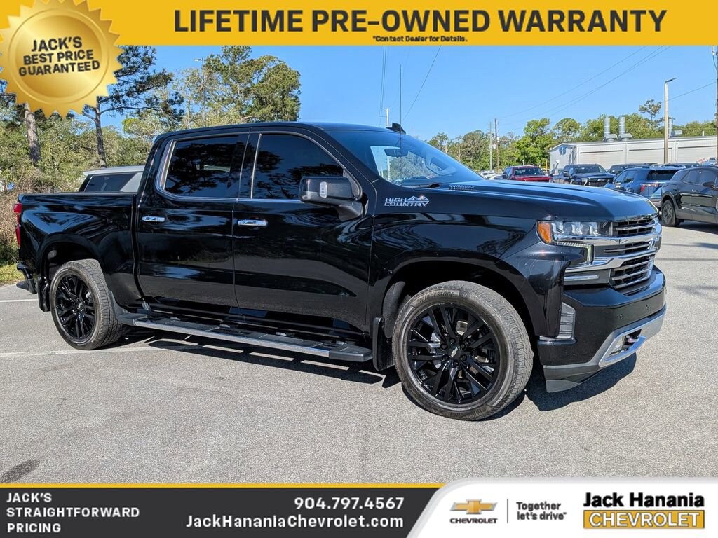 THIS VEHICLE IS ONLY AVAILABLE AT JACK HANANIA CHEVROLET AT 2255 US-1 SAINT AUGUSTINE FL 32086 CALL NOW TO BOOK YOUR TEST DRIVE #904-797-4567.2021 Chevrolet Silverado 1500 High Country for sale St Augustine, FL, HOME OF THE LIFETIME POWER TRAIN WARRANTY! ASK DEALER FOR DETAILS, 10-Speed Automatic, 4WD, Jet Black Leather, 10-Way Power Driver Seat w/Lumbar, 10-Way Power Passenger Seat Adjuster w/Lumbar, 12-Volt Rear Auxiliary Power Outlet, 120-Volt Bed Mounted Power Outlet, 120-Volt Instrument Panel Power Outlet, 15 Diagonal Multicolor Head-Up Display, 4G LTE Wi-Fi Hot Spot Capable, 8 Driver Information Center, Adaptive Cruise Control, Advanced Trailering System, All-Weather Floor Liner (LPO), Auto-Dimming Inside Rear-View Mirror, Auto-Locking Rear Differential, Automatic Emergency Braking, Auxiliary External Transmission Oil Cooler, Bed View Camera, Bluetooth® For Phone, Chevrolet Connected Access Capable, Chevytec Spray-On Black Bedliner, Chrome Assist Steps, Chrome Grille, Chrome Recovery Hooks, Color-Keyed Carpeting Floor Covering, Compass, Deep-Tinted Glass, Driver Memory, Dual Exhaust w/Polished Outlets, Electric Rear-Window Defogger, Electrical Lock Control Steering Column, Electronic Cruise Control, Floor Mounted Center Console, Following Distance Indicator, Forward Collision Alert, Front Carpeted Floor Mats, Front LED Fog Lamps, Front Pedestrian Braking, HD Rear Vision Camera, HD Surround Vision w/2 Trailer View Camera Provisions, Heated Driver & Front Outboard Passenger Seats, Heated Steering Wheel, High Country Deluxe, Hitch Guidance, Hitch Guidance w/Hitch View, Integrated Trailer Brake Controller, IntelliBeam Automatic High Beam On/Off, Keyless Open & Start, Lane Change Alert w/Side Blind Zone Alert, Lane Keep Assist w/Lane Departure Warning, Leather Wrapped Steering Wheel, LED Cargo Area Lighting, Manual Tilt/Telescoping Steering Column, Navigation System, OnStar & Chevrolet Connected Services Capable, Outside Heated Power-Adjustable Mirrors, Painted Mirror Caps, Power Door Locks, Power Front Passenger Windows w/Express Up/Down, Power Front Windows w/Driver Express Up/Down, Power Rear Windows w/Express Down, Power Sliding Rear Window w/Rear Defogger, Power Sunroof, Power Tailgate, Preferred Equipment Group 3LZ, Rear Camera Mirror, Rear Carpeted Floor Mats, Rear Cross Traffic Alert, Rear Dual USB Charging-Only Ports, Rear Wheelhouse Liners, Remote Vehicle Starter System, Safety Alert Seat, Safety Package II, SiriusXM w/360L, Standard Tailgate, Steering Wheel Audio Controls, Technology Package, Theft Deterrent System (Unauthorized Entry), Trailering Package, Ultrasonic Front & Rear Park Assist, Universal Home Remote, Up-Level Rear Seat w/Storage Package, Ventilated Driver & Front Passenger Seats, Wireless Charging, Wireless Phone Projection.Email, call, or stop in today! Jack Hanania Chevrolet, the difference is we offer a transparent buying experience. Prices are PLUS tax, tag, title fee, $994 Pre-Delivery Service Fee and $434 Electronic Tag Registration Service Fee and dealer installed options (see dealer for details). Customer must trade-in a vehicle to receive $1,500 Trade Assist credit. Financing must be provided by a third-party lender using this dealership's assistance for Customer to receive $1,500 Financing Assist credit. The final online sale price and Jack's Discount includes trade in and financing assist credits. Pre-owned vehicle pricing excludes any mechanical and cosmetic reconditioning expenses or vehicle transport and acquisition costs to the Dealership from factory sales, which amount will vary depending on the vehicle. Some New and Used trucks are upfit with aftermarket lift kits, custom wheel and tire packages, that are not included in the online sales price. Vehicles with lift kits, custom wheel and tire packages, tint and ceramic coating will be added to the sales price. All prices, specifications, and availability subject to change without notice.