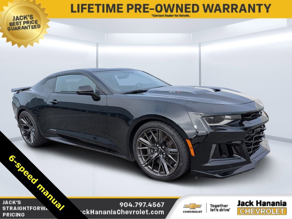 THIS VEHICLE IS ONLY AVAILABLE AT JACK HANANIA CHEVROLET AT 2255 US-1 SAINT AUGUSTINE FL 32086 CALL NOW TO BOOK YOUR TEST DRIVE #904-797-4567.2023 Chevrolet Camaro ZL1 for sale St Augustine, FL, HOME OF THE LIFETIME POWER TRAIN WARRANTY! ASK DEALER FOR DETAILS, 4-Wheel Disc Brakes, 6-Way Power Front Passenger Seat Adjuster, 8-Way Power Driver Seat Adjuster, 9 Speakers, ABS brakes, Adaptive suspension, Air Conditioning, Alloy wheels, AM/FM radio: SiriusXM with 360L, Apple CarPlay/Android Auto, Auto-dimming door mirrors, Automatic temperature control, Bluetooth® For Phone, Bose Premium 9-Speaker Audio System Feature, Brake assist, Brembo 4-Wheel Performance Disc Brakes, Bumpers: body-color, Compass, Delay-off headlights, Driver door bin, Driver vanity mirror, Dual front impact airbags, Dual front side impact airbags, Electronic Stability Control, Exterior Parking Camera Rear, Four wheel independent suspension, Front anti-roll bar, Front Bucket Seats, Front Center Armrest, Front dual zone A/C, Front reading lights, Fully automatic headlights, Heads-Up Display, Heated door mirrors, Heated Driver & Front Passenger Seats, Heated front seats, Heated steering wheel, High-Intensity Discharge Headlights, Illuminated entry, Knee airbag, Leather-Trimmed Seat Trim w/Sueded Inserts, Low tire pressure warning, Memory seat, Occupant sensing airbag, Outside temperature display, Overhead airbag, Panic alarm, Passenger door bin, Passenger vanity mirror, Power door mirrors, Power driver seat, Power passenger seat, Power steering, Power windows, Premium audio system: Chevrolet Infotainment System, Radio data system, Radio: Chevrolet Infotainment 3 Plus System, Rear anti-roll bar, Rear Park Assist, Rear window defroster, RECARO Performance Front Bucket Seats, Remote keyless entry, Security system, SiriusXM w/360L, Speed control, Speed-sensing steering, Spoiler, Sport steering wheel, Steering wheel mounted audio controls, Tachometer, Telescoping steering wheel, Tilt steering wheel, Tire Inflation Kit, Traction control, Trip computer, Variably intermittent wipers, Ventilated Driver & Front Passenger Seats, Ventilated front seats, Voltmeter, Wheels: 20 x 10 Fr & 20 x 11 Rr Dark Graphite.Email, call, or stop in today! Jack Hanania Chevrolet, the difference is we offer a transparent buying experience. Prices are PLUS tax, tag, title fee, $994 Pre-Delivery Service Fee and $434 Electronic Tag Registration Service Fee and dealer installed options (see dealer for details). Customer must trade-in a vehicle to receive $1,500 Trade Assist credit. Financing must be provided by a third-party lender using this dealership's assistance for Customer to receive $1,500 Financing Assist credit. The final online sale price and Jack's Discount includes trade in and financing assist credits. Pre-owned vehicle pricing excludes any mechanical and cosmetic reconditioning expenses or vehicle transport and acquisition costs to the Dealership from factory sales, which amount will vary depending on the vehicle. Some New and Used trucks are upfit with aftermarket lift kits, custom wheel and tire packages, that are not included in the online sales price. Vehicles with lift kits, custom wheel and tire packages, tint and ceramic coating will be added to the sales price. All prices, specifications, and availability subject to change without notice. Contact dealer for most current information. All advertised pricing is on in-stock units only and includes all applicable dealer discounts, manufacturer discounts, and incentives. Certain offers and incentives presume financing through the Manufacturer Captive Lender, subject to approved credit. Should you purchase the vehicle through the use of other funds or through other lending sources, certain offers and rebate incentives may be excluded. Due to supply chain challenges and limited inventory, vehicles may be subject to an additional market adjustment depending on inventory production, availability and marke