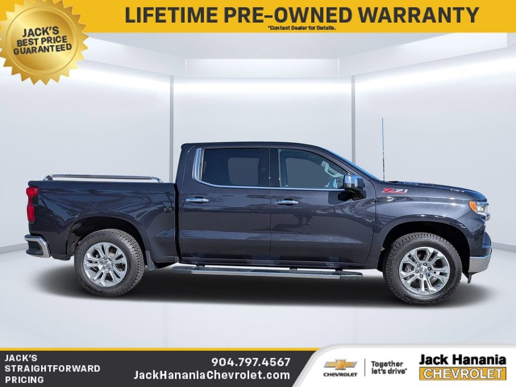 2023 Chevrolet Silverado 1500 LTZ for sale St Augustine, FL, HOME OF THE LIFETIME POWER TRAIN WARRANTY! ASK DEALER FOR DETAILS, 10-Speed Automatic, 4WD, Jet Black Leather, 2 USB Data Ports, 2nd Row Heated Outboard Seats, 3.23 Rear Axle Ratio, Adaptive Cruise Control, Floor Mounted Center Console, HD Surround Vision, High Capacity Suspension Package, LTZ Convenience Package, LTZ Convenience Package II, LTZ Plus Package, Perimeter Lighting, Power Sliding Rear Window w/Rear Defogger, Power Tilt & Telescoping Steering Column, Premium Bose 7-Speaker Sound System, Rear Cross Traffic Alert-Braking, Rear Pedestrian Alert, Safety Alert Seat, Safety Package, Trailer Camera Provisions, Trailer Side Blind Zone Alert, Ultrasonic Front & Rear Park Assist, Universal Home Remote, Ventilated Driver & Front Passenger Seats, Wireless Charging, 10-Way Power Driver Seat w/Lumbar, 10-Way Power Passenger Seat Adjuster w/Lumbar, 12.3 Multicolor Reconfigurable Digital Display, 120-Volt Bed Mounted Power Outlet, 120-Volt Instrument Panel Power Outlet, 4-Wheel Disc Brakes, 7 Speakers, ABS brakes, Air Conditioning, Alloy wheels, AM/FM radio: SiriusXM with 360L, Apple CarPlay/Android Auto, Auto High-beam Headlights, Auto-dimming door mirrors, Auto-Dimming Inside Rear-View Mirror, Auto-dimming Rear-View mirror, Auto-Locking Rear Differential, Automatic Emergency Braking, Automatic temperature control, Bluetooth® For Phone, Brake assist, Bumpers: chrome, Chevrolet Connected Access Capable, Chrome Mirror Caps, Color-Keyed Carpeting Floor Covering, Deep-Tinted Glass, Delay-off headlights, Driver Memory, Dual front impact airbags, Dual front side impact airbags, Dual Rear USB Ports (Charge Only), Electric Rear-Window Defogger, Electrical Steering Column Lock, Electronic Cruise Control, Electronic Stability Control, Electronic Transmission Range Selector Shifter, Following Distance Indicator, Forward Collision Alert, Front anti-roll bar, Front Bucket Seats, Front Center Armrest, Front dual zone A/C, Front fog lights, Front Frame-Mounted Black Recovery Hooks, Front LED Fog Lamps, Front Pedestrian Braking, Front Rainsensing Wipers, Front Rubberized Vinyl Floor Mats, Fully automatic headlights, Heated door mirrors, Heated Driver & Front Outboard Passenger Seats, Heated front seats, Heated Steering Wheel, Heated steering wheel, Hitch Guidance, Hitch Guidance w/Hitch View, Illuminated entry, Integrated Trailer Brake Controller, IntelliBeam Automatic High Beam On/Off, Keyless Open & Start, Lane Keep Assist w/Lane Departure Warning, LED Cargo Area Lighting, Low tire pressure warning, Memory seat, Occupant sensing airbag, OnStar & Chevrolet Connected Services Capable, Outside Heated Power-Adjustable Mirrors, Outside temperature display, Overhead airbag, Overhead console, Passenger door bin, Passenger vanity mirror, Perforated Leather-Appointed Front Seat Trim, Power door mirrors, Power driver seat, Power Front Passenger Windows w/Express Up/Down, Power Front Windows w/Driver Express Up/Down, Power passenger seat, Power Rear Windows w/Express Down, Power steering, Power Tailgate, Power windows, Premium audio system: Chevrolet Infotainment 3 Premium, Radio data system, Radio: Chevrolet Infotainment 3 Premium System, Rain sensing wipers, Rear reading lights, Rear Rubberized-Vinyl Floor Mats, Rear seat center armrest, Rear step bumper, Rear Wheelhouse Liners, Rear window defroster, Remote keyless entry, Remote Vehicle Starter System, SiriusXM w/360L, Speed control, Speed-sensing steering, Split folding rear seat, Standard Tailgate, Steering Wheel Audio Controls, Steering wheel mounted audio controls, Tachometer, Telescoping steering wheel, Tilt steering wheel, Traction control, Trailering App, Trailering Package, Trip computer, Up-Level Rear Seat w/Storage Package, Variabl