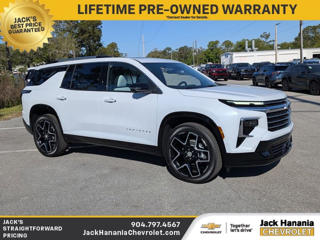 THIS VEHICLE IS ONLY AVAILABLE AT JACK HANANIA CHEVROLET AT 2255 US-1 SAINT AUGUSTINE FL 32086 CALL NOW TO BOOK YOUR TEST DRIVE #904-797-4567.2026 Chevrolet Traverse High Country for sale St Augustine, FL, HOME OF THE LIFETIME POWER TRAIN WARRANTY! ASK DEALER FOR DETAILS, ABS brakes, Active Cruise Control, Alloy wheels, Compass, Electronic Stability Control, Front dual zone A/C, Heated door mirrors, Heated front seats, Heated rear seats, Illuminated entry, Low tire pressure warning, Power Liftgate, Remote keyless entry, Traction control.Email, call, or stop in today! Jack Hanania Chevrolet, the difference is we offer a transparent buying experience. Prices are PLUS tax, tag, title fee, $994 Pre-Delivery Service Fee and $434 Electronic Tag Registration Service Fee and dealer installed options (see dealer for details). Customer must trade-in a vehicle to receive $1,500 Trade Assist credit. Financing must be provided by a third-party lender using this dealership's assistance for Customer to receive $1,500 Financing Assist credit. The final online sale price and Jack's Discount includes trade in and financing assist credits. Pre-owned vehicle pricing excludes any mechanical and cosmetic reconditioning expenses or vehicle transport and acquisition costs to the Dealership from factory sales, which amount will vary depending on the vehicle. Some New and Used trucks are upfit with aftermarket lift kits, custom wheel and tire packages, that are not included in the online sales price. Vehicles with lift kits, custom wheel and tire packages, tint and ceramic coating will be added to the sales price. All prices, specifications, and availability subject to change without notice. Contact dealer for most current information. All advertised pricing is on in-stock units only and includes all applicable dealer discounts, manufacturer discounts, and incentives. Certain offers and incentives presume financing through the Manufacturer Captive Lender, subject to approved credit. Should you purchase the vehicle through the use of other funds or through other lending sources, certain offers and rebate incentives may be excluded. Due to supply chain challenges and limited inventory, vehicles may be subject to an additional market adjustment depending on inventory production, availability and market conditions. Please see dealer for details.