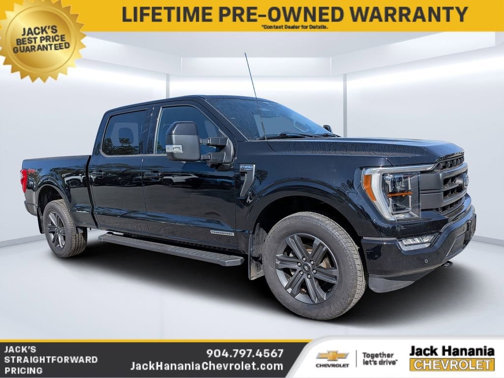 THIS VEHICLE IS ONLY AVAILABLE AT JACK HANANIA CHEVROLET AT 2255 US-1 SAINT AUGUSTINE FL 32086 CALL NOW TO BOOK YOUR TEST DRIVE #904-797-4567.3.5L PowerBoost Full-Hybrid V6, 4WD, 2nd Row Heated Seats, 4x4 FX4 Off-Road Bodyside Decal, ABS brakes, Accent-Color Angular Step Bars, Alloy wheels, Body-Color Front & Rear Bumpers, Box Side Decals, Chrome Single-Tip Exhaust, Compass, Connected Built-In Navigation, Dark 2-Bar & 1 Minor Bar Style Grille, Electronic Locking w/3.73 Axle Ratio, Electronic Stability Control, Equipment Group 502A High, Evasive Steering Assist, Ford Co-Pilot360 Assist 2.0, Front dual zone A/C, FX4 Off-Road Package, Heated door mirrors, Heated front seats, Hill Descent Control, Illuminated entry, Intelligent Adaptive Cruise Control w/Stop & Go, Intersection Assist, Lariat Sport Appearance Package, LED Projector w/Dynamic Bending Headlamps, Low tire pressure warning, Monotube Rear Shocks, Off-Road Tuned Front Shock Absorbers, Power Tilt/Telescoping Steering Column w/Memory, Rain-Sensing Wipers, Remote keyless entry, Rock Crawl Mode, Speed Sign Recognition, Traction control, Twin Panel Moonroof, Wheels: 20 Chrome-Like PVD, Wireless Charging Pad.Email, call, or stop in today! Jack Hanania Chevrolet, the difference is we offer a transparent buying experience. Prices are PLUS tax, tag, title fee, $994 Pre-Delivery Service Fee and $434 Electronic Tag Registration Service Fee and dealer installed options (see dealer for details). Customer must trade-in a vehicle to receive $1,500 Trade Assist credit. Financing must be provided by a third-party lender using this dealership's assistance for Customer to receive $1,500 Financing Assist credit. The final online sale price and Jack's Discount includes trade in and financing assist credits. Pre-owned vehicle pricing excludes any mechanical and cosmetic reconditioning expenses or vehicle transport and acquisition costs to the Dealership from factory sales, which amount will vary depending on the vehicle. Some New and Used trucks are upfit with aftermarket lift kits, custom wheel and tire packages, that are not included in the online sales price. Vehicles with lift kits, custom wheel and tire packages, tint and ceramic coating will be added to the sales price. All prices, specifications, and availability subject to change without notice. Contact dealer for most current information. All advertised pricing is on in-stock units only and includes all applicable dealer discounts, manufacturer discounts, and incentives. Certain offers and incentives presume financing through the Manufacturer Captive Lender, subject to approved credit. Should you purchase the vehicle through the use of other funds or through other lending sources, certain offers and rebate incentives may be excluded. Due to supply chain challenges and limited inventory, vehicles may be subject to an additional market adjustment depending on inventory production, availability and market conditions. Please see dealer for details.