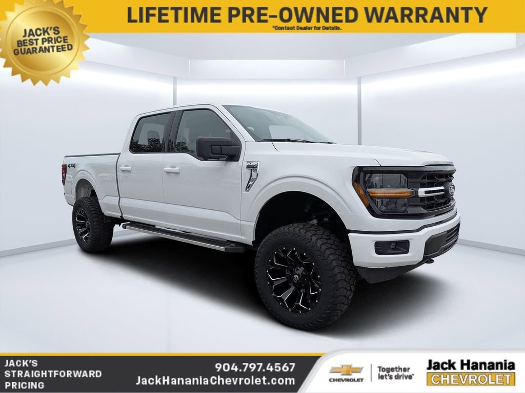 THIS VEHICLE IS ONLY AVAILABLE AT JACK HANANIA CHEVROLET AT 2255 US-1 SAINT AUGUSTINE FL 32086 CALL NOW TO BOOK YOUR TEST DRIVE #904-797-4567.2024 Ford F-150 XLT for sale St Augustine, FL, HOME OF THE LIFETIME POWER TRAIN WARRANTY! ASK DEALER FOR DETAILS, 4WD, 3.31 Axle Ratio, 4-Wheel Disc Brakes, 6 Speakers, ABS brakes, Air Conditioning, Alloy wheels, AM/FM radio: SiriusXM with 360L, Auto High-beam Headlights, Auto-dimming Rear-View mirror, Automatic temperature control, Brake assist, Bumpers: chrome, Chrome wheels, Cloth 40/20/40 Front Seat, Compass, Delay-off headlights, Driver door bin, Driver vanity mirror, Dual front impact airbags, Dual front side impact airbags, Electronic Stability Control, Emergency communication system: SYNC 4 911 Assist, Front anti-roll bar, Front Center Armrest w/Storage, Front dual zone A/C, Front fog lights, Front reading lights, Front wheel independent suspension, Fully automatic headlights, Heated door mirrors, Illuminated entry, Low tire pressure warning, Navigation system: Connected Navigation, Occupant sensing airbag, Outside temperature display, Overhead airbag, Overhead console, Panic alarm, Passenger door bin, Passenger vanity mirror, Power door mirrors, Power driver seat, Power steering, Power windows, Radio data system, Radio: AM/FM SiriusXM w/360L, Rear reading lights, Rear step bumper, Rear window defroster, Remote keyless entry, Security system, Speed control, Split folding rear seat, Steering wheel mounted audio controls, SYNC 4 w/Enhanced Voice Recognition, Tachometer, Telescoping steering wheel, Tilt steering wheel, Traction control, Trip computer, Variably intermittent wipers, Voltmeter, Wheels: 18 Chrome-Like PVD, 4WD.Email, call, or stop in today! Jack Hanania Chevrolet, the difference is we offer a transparent buying experience. Prices are PLUS tax, tag, title fee, $994 Pre-Delivery Service Fee and $434 Electronic Tag Registration Service Fee and dealer installed options (see dealer for details). Customer must trade-in a vehicle to receive $1,500 Trade Assist credit. Financing must be provided by a third-party lender using this dealership's assistance for Customer to receive $1,500 Financing Assist credit. The final online sale price and Jack's Discount includes trade in and financing assist credits. Pre-owned vehicle pricing excludes any mechanical and cosmetic reconditioning expenses or vehicle transport and acquisition costs to the Dealership from factory sales, which amount will vary depending on the vehicle. Some New and Used trucks are upfit with aftermarket lift kits, custom wheel and tire packages, that are not included in the online sales price. Vehicles with lift kits, custom wheel and tire packages, tint and ceramic coating will be added to the sales price. All prices, specifications, and availability subject to change without notice. Contact dealer for most current information. All advertised pricing is on in-stock units only and includes all applicable dealer discounts, manufacturer discounts, and incentives. Certain offers and incentives presume financing through the Manufacturer Captive Lender, subject to approved credit. Should you purchase the vehicle through the use of other funds or through other lending sources, certain offers and rebate incentives may be excluded. Due to supply chain challenges and limited inventory, vehicles may be subject to an additional market adjustment depending on inventory production, availability and market conditions. Please see dealer for details.