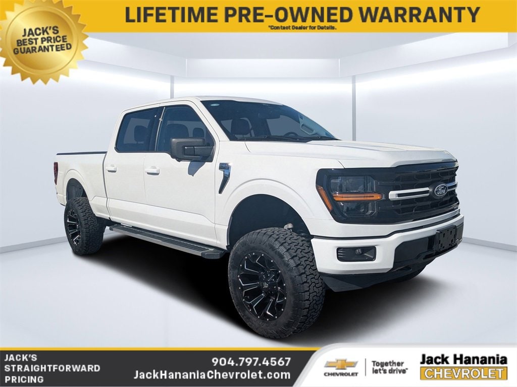 THIS VEHICLE IS ONLY AVAILABLE AT JACK HANANIA CHEVROLET AT 2255 US-1 SAINT AUGUSTINE FL 32086 CALL NOW TO BOOK YOUR TEST DRIVE #904-797-4567.2024 Ford F-150 XLT for sale St Augustine, FL, HOME OF THE LIFETIME POWER TRAIN WARRANTY! ASK DEALER FOR DETAILS, 4WD, 3.31 Axle Ratio, 4-Wheel Disc Brakes, 6 Speakers, ABS brakes, Air Conditioning, Alloy wheels, AM/FM radio: SiriusXM with 360L, Auto High-beam Headlights, Auto-dimming Rear-View mirror, Automatic temperature control, Brake assist, Bumpers: chrome, Chrome wheels, Cloth 40/20/40 Front Seat, Compass, Delay-off headlights, Driver door bin, Driver vanity mirror, Dual front impact airbags, Dual front side impact airbags, Electronic Stability Control, Emergency communication system: SYNC 4 911 Assist, Front anti-roll bar, Front Center Armrest w/Storage, Front dual zone A/C, Front fog lights, Front reading lights, Front wheel independent suspension, Fully automatic headlights, Heated door mirrors, Illuminated entry, Low tire pressure warning, Navigation system: Connected Navigation, Occupant sensing airbag, Outside temperature display, Overhead airbag, Overhead console, Panic alarm, Passenger door bin, Passenger vanity mirror, Power door mirrors, Power driver seat, Power steering, Power windows, Radio data system, Radio: AM/FM SiriusXM w/360L, Rear reading lights, Rear step bumper, Rear window defroster, Remote keyless entry, Security system, Speed control, Split folding rear seat, Steering wheel mounted audio controls, SYNC 4 w/Enhanced Voice Recognition, Tachometer, Telescoping steering wheel, Tilt steering wheel, Traction control, Trip computer, Variably intermittent wipers, Voltmeter, Wheels: 18 Chrome-Like PVD, 4WD.Email, call, or stop in today! Jack Hanania Chevrolet, the difference is we offer a transparent buying experience. Prices are PLUS tax, tag, title fee, $994 Pre-Delivery Service Fee and $434 Electronic Tag Registration Service Fee and dealer installed options (see dealer for details). Customer must trade-in a vehicle to receive $1,500 Trade Assist credit. Financing must be provided by a third-party lender using this dealership's assistance for Customer to receive $1,500 Financing Assist credit. The final online sale price and Jack's Discount includes trade in and financing assist credits. Pre-owned vehicle pricing excludes any mechanical and cosmetic reconditioning expenses or vehicle transport and acquisition costs to the Dealership from factory sales, which amount will vary depending on the vehicle. Some New and Used trucks are upfit with aftermarket lift kits, custom wheel and tire packages, that are not included in the online sales price. Vehicles with lift kits, custom wheel and tire packages, tint and ceramic coating will be added to the sales price. All prices, specifications, and availability subject to change without notice. Contact dealer for most current information. All advertised pricing is on in-stock units only and includes all applicable dealer discounts, manufacturer discounts, and incentives. Certain offers and incentives presume financing through the Manufacturer Captive Lender, subject to approved credit. Should you purchase the vehicle through the use of other funds or through other lending sources, certain offers and rebate incentives may be excluded. Due to supply chain challenges and limited inventory, vehicles may be subject to an additional market adjustment depending on inventory production, availability and market conditions. Please see dealer for details.