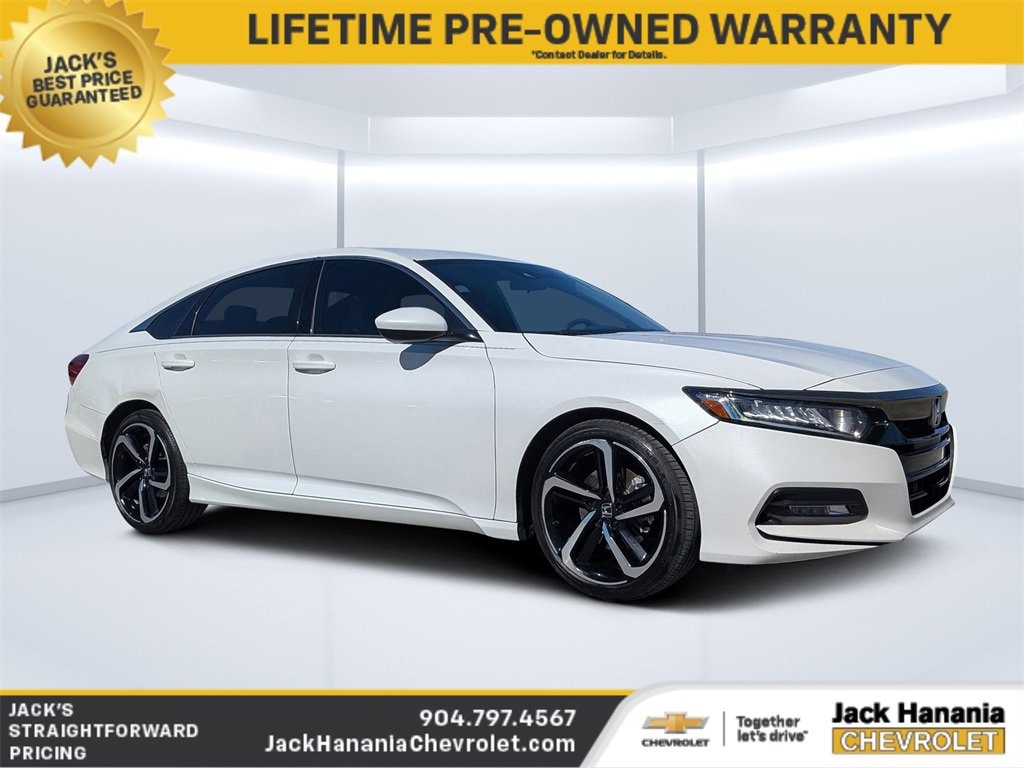2020 Honda Accord Sport for sale St Augustine, FL, HOME OF THE LIFETIME POWER TRAIN WARRANTY! ASK DEALER FOR DETAILS, Black w/Cloth Seat Trim, 4-Wheel Disc Brakes, 8 Speakers, ABS brakes, Adaptive Cruise Control: Adaptive Cruise Control (ACC) with Low-Speed Follow, Air Conditioning, Alloy wheels, AM/FM radio, Apple CarPlay/Android Auto, Auto High-beam Headlights, Automatic temperature control, Brake assist, Bumpers: body-color, Cloth Seat Trim, Delay-off headlights, Driver door bin, Driver vanity mirror, Dual front impact airbags, Dual front side impact airbags, Electronic Stability Control, Emergency communication system: HondaLink, Exterior Parking Camera Rear, Forward collision: Collision Mitigation Braking System (CMBS) + FCW mitigation, Four wheel independent suspension, Front anti-roll bar, Front Bucket Seats, Front Center Armrest, Front dual zone A/C, Front fog lights, Front reading lights, Fully automatic headlights, Illuminated entry, Knee airbag, Lane Departure Warning System, Leather Shift Knob, Leather steering wheel, Low tire pressure warning, Occupant sensing airbag, Outside temperature display, Overhead airbag, Overhead console, Panic alarm, Passenger door bin, Passenger vanity mirror, Power door mirrors, Power driver seat, Power steering, Power windows, Radio data system, Radio: 180-Watt AM/FM Audio System, Rear anti-roll bar, Rear seat center armrest, Rear window defroster, Remote keyless entry, Security system, Speed control, Speed-sensing steering, Speed-Sensitive Wipers, Split folding rear seat, Spoiler, Steering wheel mounted audio controls, Tachometer, Telescoping steering wheel, Tilt steering wheel, Traction control, Trip computer, Variably intermittent wipers, Wheels: 19 Machine-Finished Alloy w/Black Inserts, Black w/Cloth Seat Trim.