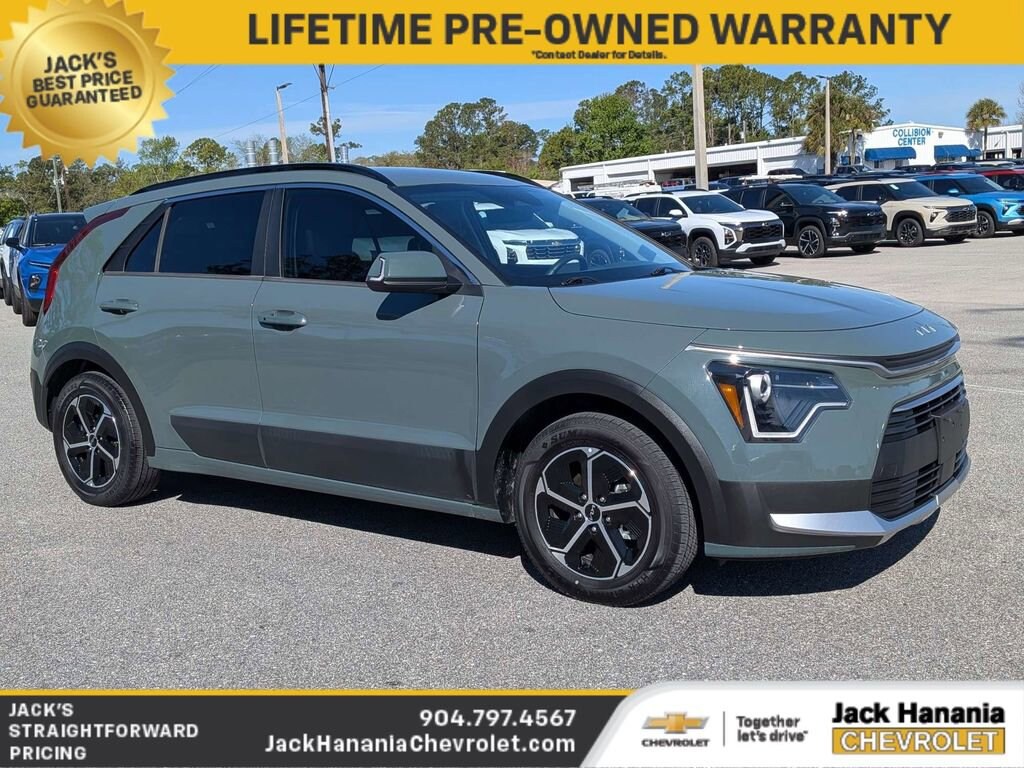THIS VEHICLE IS ONLY AVAILABLE AT JACK HANANIA CHEVROLET AT 2255 US-1 SAINT AUGUSTINE FL 32086 CALL NOW TO BOOK YOUR TEST DRIVE #904-797-4567.2024 Kia Niro EX for sale St Augustine, FL, HOME OF THE LIFETIME POWER TRAIN WARRANTY! ASK DEALER FOR DETAILS, 1.6L I4 DGI Hybrid DOHC 16V LEV3-SULEV30, 4-Wheel Disc Brakes, 4.438 Axle Ratio, 6 Speakers, ABS brakes, Air Conditioning, Alloy wheels, AM/FM radio: SiriusXM, Apple CarPlay & Android Auto, Auto High-beam Headlights, Automatic temperature control, Brake assist, Bumpers: body-color, Cargo Cover, Cargo Net, Carpet Floor Mats, Cloth & Vegan Leather-Trimmed Seats, Delay-off headlights, Driver door bin, Driver vanity mirror, Dual front impact airbags, Dual front side impact airbags, Electronic Stability Control, Emergency communication system: Kia Connect (includes 1 year free trial), Exterior Parking Camera Rear, Four wheel independent suspension, Front anti-roll bar, Front Bucket Seats, Front Center Armrest, Front dual zone A/C, Front reading lights, Fully automatic headlights, Heated door mirrors, Heated Front Bucket Seats (3-Steps), Heated front seats, Illuminated entry, Knee airbag, Leather Shift Knob, Low tire pressure warning, Navigation System, Occupant sensing airbag, Outside temperature display, Overhead airbag, Overhead console, Panic alarm, Passenger door bin, Passenger vanity mirror, Power door mirrors, Power driver seat, Power steering, Power windows, Radio: AM/FM/HD/SiriusXM, Rain sensing wipers, Rear anti-roll bar, Rear seat center armrest, Rear window defroster, Rear window wiper, Remote keyless entry, Security system, Smart Key w/ Push Button and Remote Start, Speed control, Speed-sensing steering, Split folding rear seat, Spoiler, Steering wheel mounted audio controls, Telescoping steering wheel, Tilt steering wheel, Traction control, Trip computer, Turn signal indicator mirrors, Variably intermittent wipers, 1.6L I4 DGI Hybrid DOHC 16V LEV3-SULEV30.Email, call, or stop in today! Jack Hanania Chevrolet, the difference is we offer a transparent buying experience. Prices are PLUS tax, tag, title fee, $994 Pre-Delivery Service Fee and $434 Electronic Tag Registration Service Fee and dealer installed options (see dealer for details). Customer must trade-in a vehicle to receive $1,500 Trade Assist credit. Financing must be provided by a third-party lender using this dealership's assistance for Customer to receive $1,500 Financing Assist credit. The final online sale price and Jack's Discount includes trade in and financing assist credits. Pre-owned vehicle pricing excludes any mechanical and cosmetic reconditioning expenses or vehicle transport and acquisition costs to the Dealership from factory sales, which amount will vary depending on the vehicle. Some New and Used trucks are upfit with aftermarket lift kits, custom wheel and tire packages, that are not included in the online sales price. Vehicles with lift kits, custom wheel and tire packages, tint and ceramic coating will be added to the sales price. All prices, specifications, and availability subject to change without notice. Contact dealer for most current information. All advertised pricing is on in-stock units only and includes all applicable dealer discounts, manufacturer discounts, and incentives. Certain offers and incentives presume financing through the Manufacturer Captive Lender, subject to approved credit. Should you purchase the vehicle through the use of other funds or through other lending sources, certain offers and rebate incentives may be excluded. Due to supply chain challenges and limited inventory, vehicles may be subject to an additional market adjustment depending on inventory production, availability and market conditions. Please see dealer for details.
