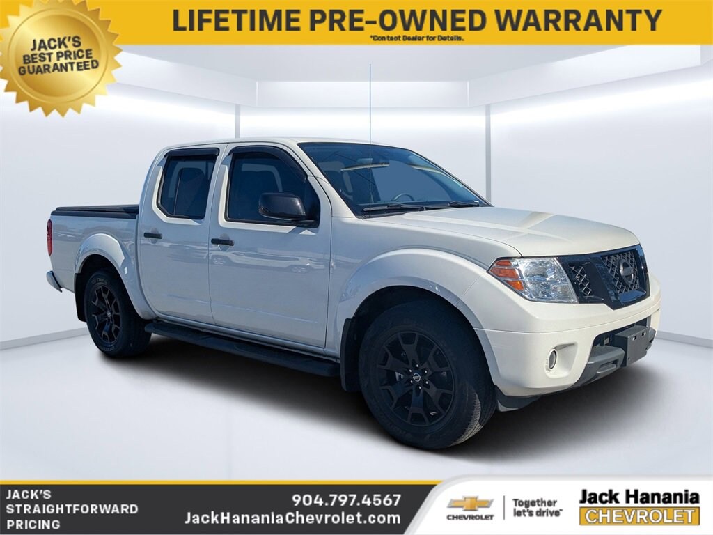 THIS VEHICLE IS ONLY AVAILABLE AT JACK HANANIA CHEVROLET AT 2255 US-1 SAINT AUGUSTINE FL 32086 CALL NOW TO BOOK YOUR TEST DRIVE #904-797-4567.2021 Nissan Frontier SV for sale St Augustine, FL, HOME OF THE LIFETIME POWER TRAIN WARRANTY! ASK DEALER FOR DETAILS, 16 Alloy Wheels, 2 Additional Speakers, 3.692 Axle Ratio, 4-Wheel Disc Brakes, 6 Speakers, ABS brakes, Air Conditioning, Alloy wheels, Anti-whiplash front head restraints, Auto-Dimming Mirror w/Compass & Temperature, Bed Rail Caps, Black Painted Exterior Rearview Mirrors, Body-Colored Rear Bumper, Bumpers: body-color, Cloth Seat Trim, Driver door bin, Driver vanity mirror, Dual front impact airbags, Dual front side impact airbags, Dual Zone Automatic Air Conditioning, Electronic Stability Control, Exterior Parking Camera Rear, Fog Lamps, Front anti-roll bar, Front Bucket Seats, Front Center Armrest, Front reading lights, Front wheel independent suspension, Gloss Black Painted Grille, Heated Front Seats, Illuminated entry, Leather Shift Knob, Low tire pressure warning, Low-Gloss Black BI Badging, Midnight Edition Badge, Midnight Edition Floor Mats, Midnight Edition Package, Occupant sensing airbag, Overhead airbag, Overhead console, Panic alarm, Passenger door bin, Passenger vanity mirror, Power door mirrors, Power steering, Power windows, Radio data system, Radio: AM/FM/AUX Audio System w/6 Speakers, Rear Sonar, Rear step bumper, Remote keyless entry, Semi-Gloss Black Carline Badging, Semi-Gloss Black Step Rails, Sliding Bed Extender, Speed control, Speed-sensing steering, Splash Guards, Split folding rear seat, Spray-In Bedliner, Steering wheel mounted audio controls, Tachometer, Tilt steering wheel, Traction control, Trailer Hitch, Utili-Track System, Value Truck Package, Value Truck Package (PIO), Variably intermittent wipers, Vehicle Security System (VSS), Voltmeter, Wheels: 18 Gloss Black.Email, call, or stop in today! Jack Hanania Chevrolet, the difference is we offer a transparent buying experience. Prices are PLUS tax, tag, title fee, $994 Pre-Delivery Service Fee and $434 Electronic Tag Registration Service Fee and dealer installed options (see dealer for details). Customer must trade-in a vehicle to receive $1,500 Trade Assist credit. Financing must be provided by a third-party lender using this dealership's assistance for Customer to receive $1,500 Financing Assist credit. The final online sale price and Jack's Discount includes trade in and financing assist credits. Pre-owned vehicle pricing excludes any mechanical and cosmetic reconditioning expenses or vehicle transport and acquisition costs to the Dealership from factory sales, which amount will vary depending on the vehicle. Some New and Used trucks are upfit with aftermarket lift kits, custom wheel and tire packages, that are not included in the online sales price. Vehicles with lift kits, custom wheel and tire packages, tint and ceramic coating will be added to the sales price. All prices, specifications, and availability subject to change without notice. Contact dealer for most current information. All advertised pricing is on in-stock units only and includes all applicable dealer discounts, manufacturer discounts, and incentives. Certain offers and incentives presume financing through the Manufacturer Captive Lender, subject to approved credit. Should you purchase the vehicle through the use of other funds or through other lending sources, certain offers and rebate incentives may be excluded. Due to supply chain challenges and limited inventory, vehicles may be subject to an additional market adjustment depending on inventory production, availability and market conditions. Please see dealer for details.